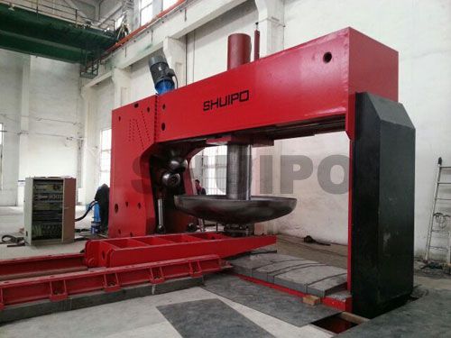 智能旋壓機(jī)是山東水泊焊割設(shè)備制造有限公司(SHUIPO)在總結(jié)了國內(nèi)外旋壓設(shè)備設(shè)計(jì),工藝調(diào)試經(jīng)驗(yàn)的基礎(chǔ)上,自行開發(fā)、研制的全自動封頭旋壓機(jī)。采用先進(jìn)的PLC可編程控制技術(shù),微電子技術(shù),具有自動化程度高,工作效率高,無需編程,使用方便,運(yùn)行平穩(wěn),性能可靠等優(yōu)點(diǎn),壓輪控制電機(jī)采用安川伺服電機(jī),運(yùn)行精度高,啟動力矩大,運(yùn)行平穩(wěn),具有過載保護(hù)等功能,不僅提高了效率并且確保了批量生產(chǎn)過程中穩(wěn)定的旋壓質(zhì)量,還改善了操作環(huán)境。