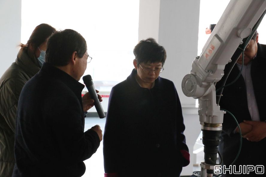 領(lǐng)導(dǎo)們在水泊焊割機(jī)器人智能制造展示中心參觀